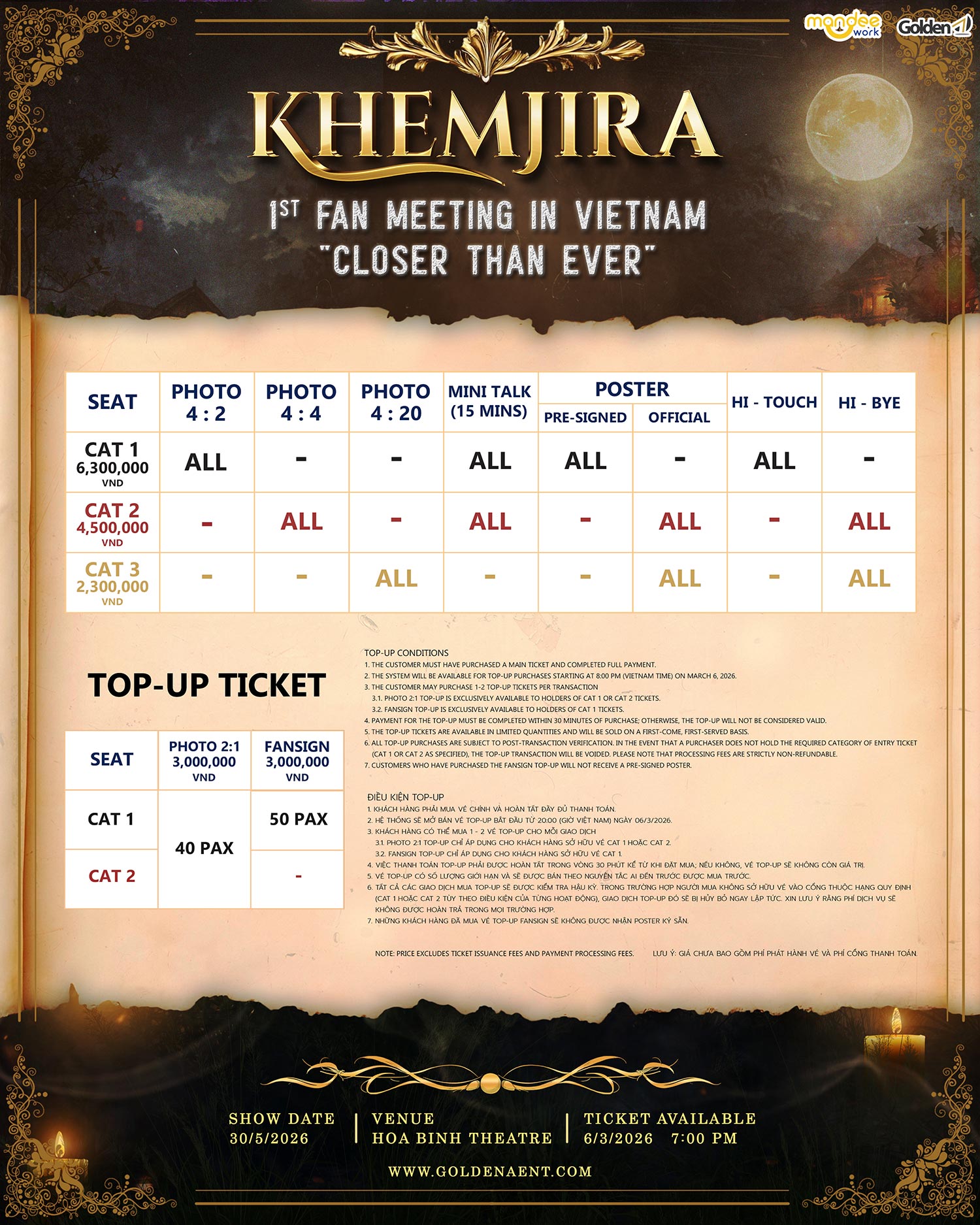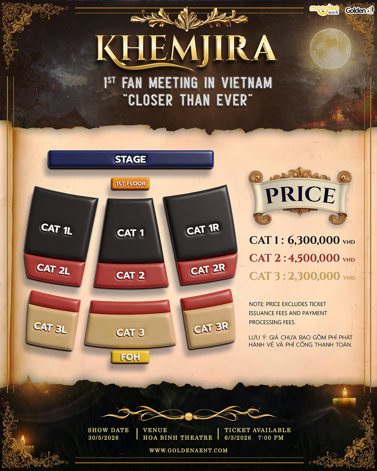 Ticket Price: 6,300,000 / 4,500,000 / 2,300,000 VND